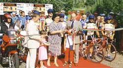 tagliò il nastro in mezzo alla folla ed ai giornalisti.